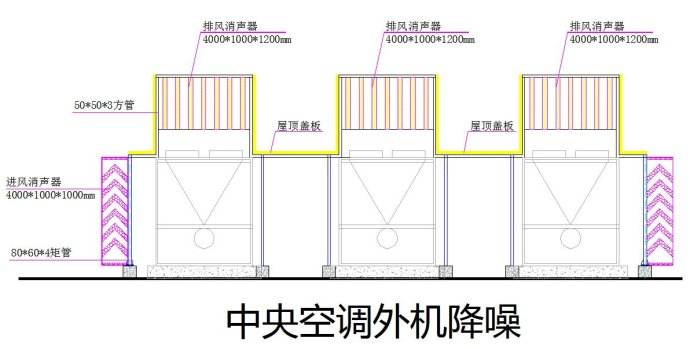 1、空調(diào)風(fēng)機(jī)出口處安裝復(fù)合式消聲設(shè)備,消耗風(fēng)機(jī)空氣動力性噪聲能量;安裝環(huán)境允許情況下也可在空調(diào)機(jī)外側(cè)安裝隔聲屏障,為周圍住宅營造聲影保護(hù)區(qū)域。